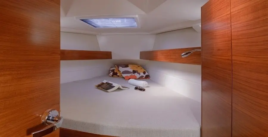 Superb 12 - meter racing boat designed and optimized for maximum performance combined with easy maneuvering. 3-cabin cruiser-racer model with 2 steering wheels and full batten mainsail, designed by J&J Design studio. Clean deck with elegant lines and voluminous cockpit gives the boat a special functional and aesthetic value. Salon 38 is characterized by a spacious interior typical of larger boats. 15 identical sailboats based in Primošten, Croatia.