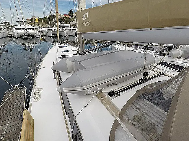 Heating , Refrigerator , Barbecue grill in cockpit , Bimini , Cockpit cushions , Sprayhood , Outboard engine , Dinghy , Electric winches , Wi-Fi & Internet