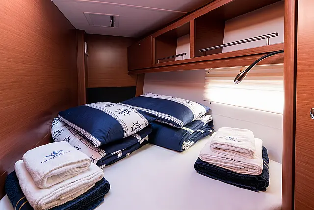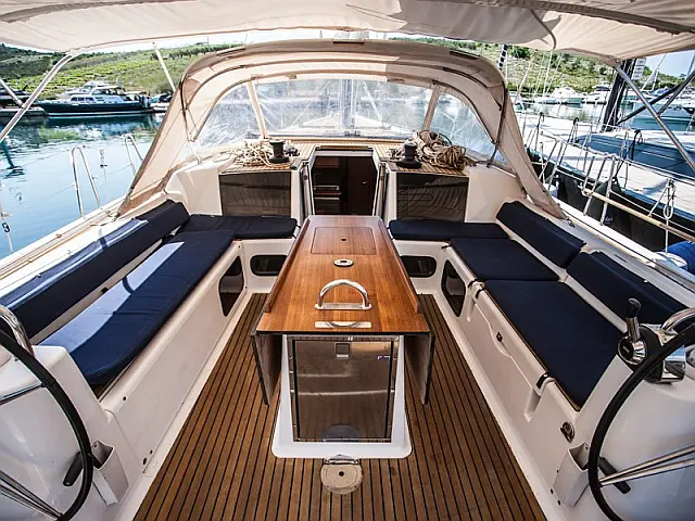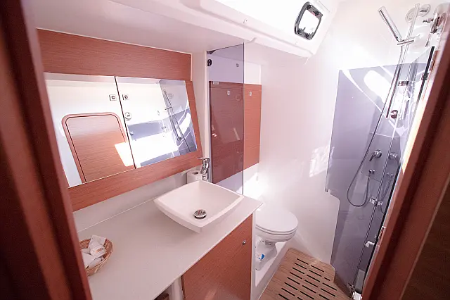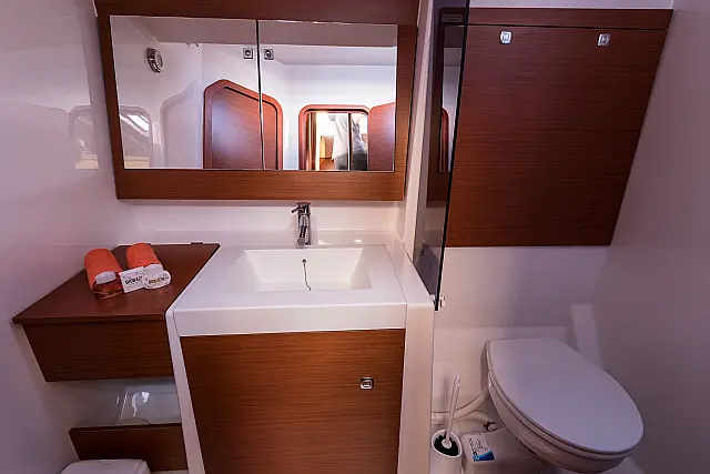 Refrigerator , Ice maker , Coffee maker , Holding tank , Inverter , Dishwasher , Air condition , Heating , Teak deck , Teak Cockpit , Hydraulic gangway , Sprayhood , Bimini , Generator , Electric toilet , Electric winches