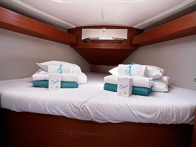 Starter pack 3: Welcome gift; BBQ; water purifier; Bed linen for each cabin; Bath Towel set (1 bath towel + 1 face towel + 1 beach towel for each crew member); 1 Gas Cylinder; Final cleaning) 375.00 € per booking