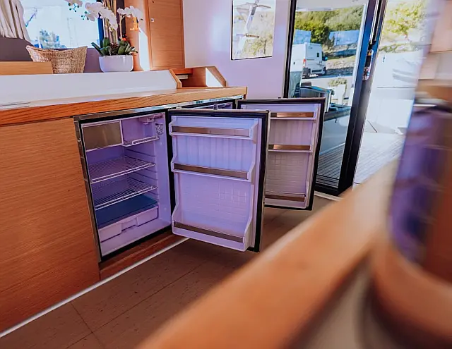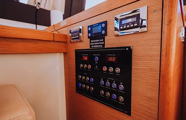 Coffee maker , Ice maker , Refrigerator , Holding tank , Inverter , Washer/Dryer , Dishwasher , Air condition , Heating , Teak Cockpit , Hydraulic gangway , Bimini , Generator , Electric toilet , Electric winches