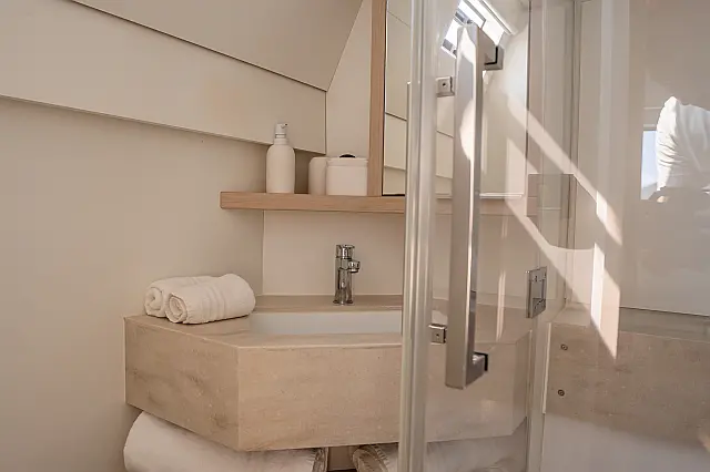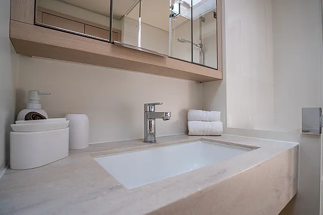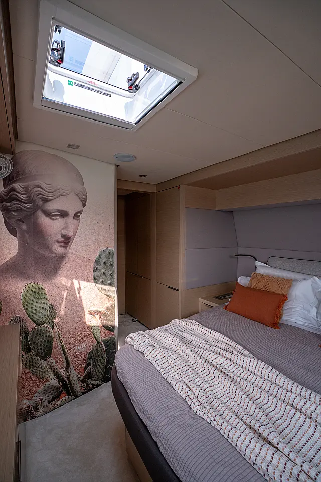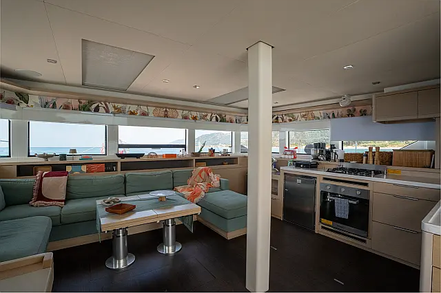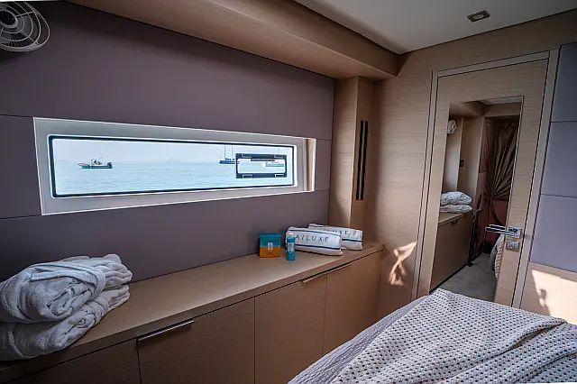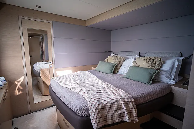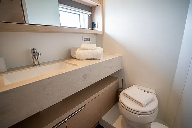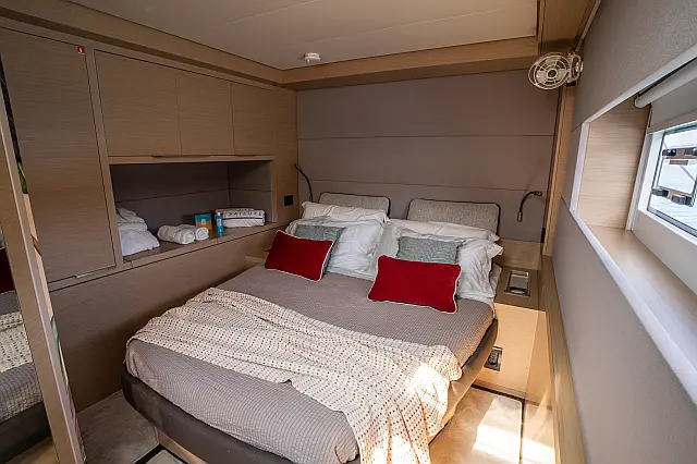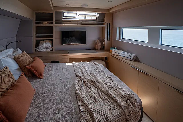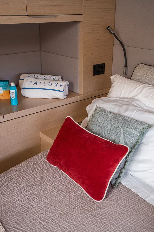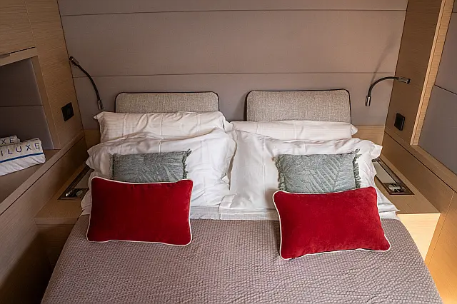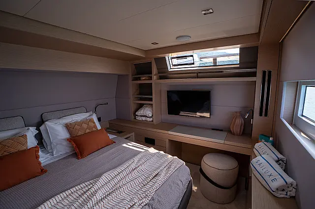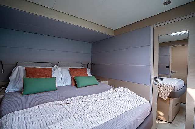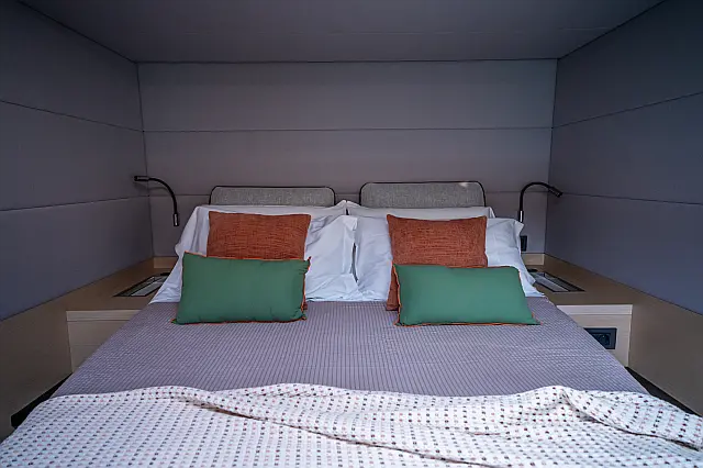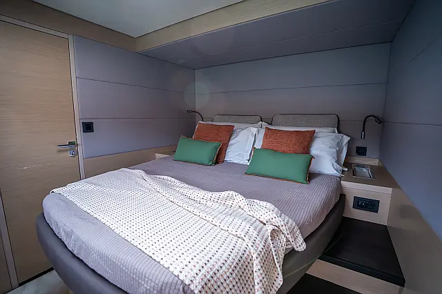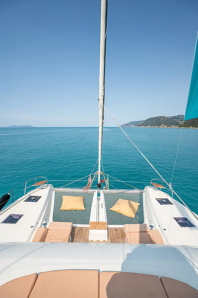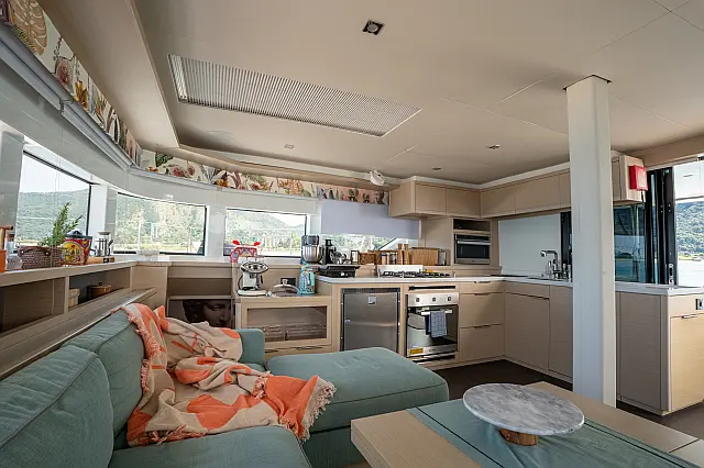 Dinghy , Outboard engine , Teak Cockpit , Refrigerator , Flybridge , Air condition , Cockpit speakers , Water maker , Hydraulic gangway , Barbecue grill in cockpit , Inverter , Coffee maker , Generator , Electric toilet