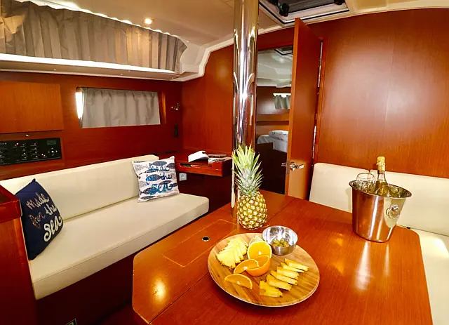 Dinghy , Outboard engine , Bimini , Cockpit cushions , Sprayhood , Teak Cockpit , Refrigerator