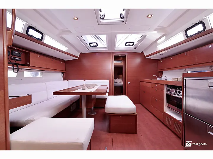 Swimming platform , Bimini , Refrigerator , Electric toilet , Barbecue grill in cockpit , Solar Panels , Sprayhood , Dinghy , Heating , Inverter