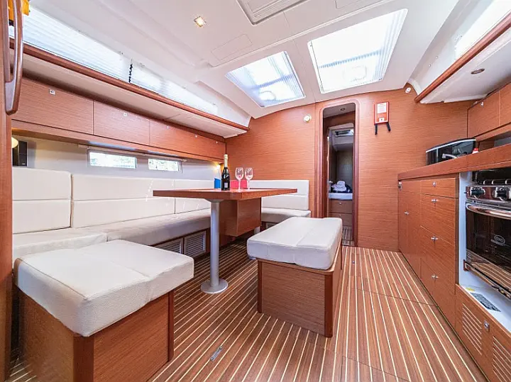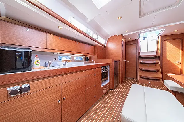 Refrigerator , Ice maker , Coffee maker , Inverter , Dinghy , Air condition , Generator , Outboard engine , Teak deck , Sprayhood , Bimini , Electric toilet