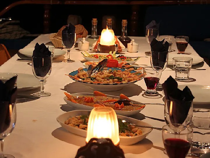 Ultra All inclusive Catering on board. Food & Beverages (incl. wine and beer) € 450,00 pp. (KIDS UNDER 17 HAVE DISCOUNT !) 450.00 € per week