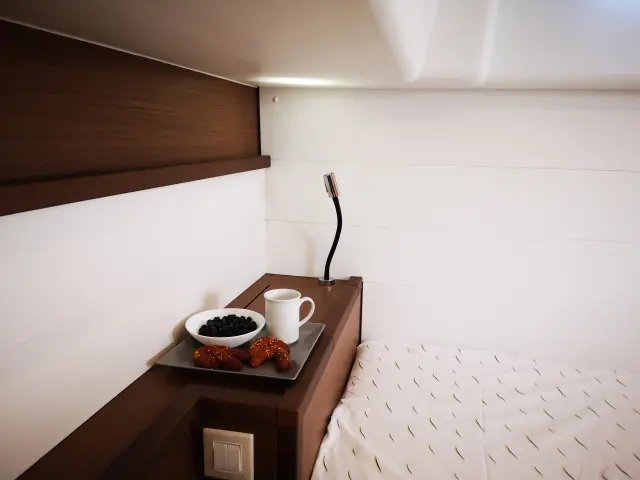 Bimini , Outboard engine , Coffee maker , Air condition , Generator , Teak deck , Cockpit cushions , Electric toilet , Electric winches