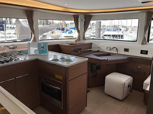 Outboard engine , Ice maker , Coffee maker , Air condition , Generator , Teak deck , Cockpit cushions , Electric winches , Water maker , Electric toilet , Bimini , Refrigerator
