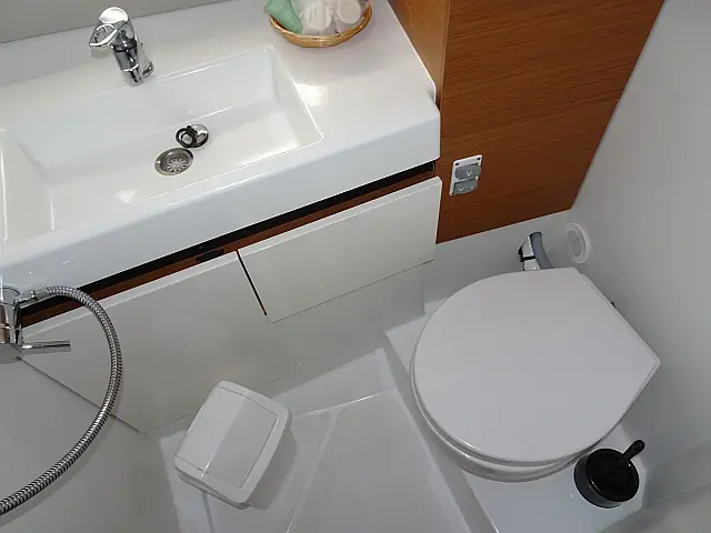 Refrigerator , Coffee maker , Inverter , Air condition , Ice maker , Heating , Sprayhood , Bimini , Teak deck , Generator , Electric toilet