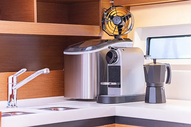 Refrigerator , Coffee maker , Inverter , Air condition , Ice maker , Heating , Sprayhood , Bimini , Teak deck , Generator , Electric toilet