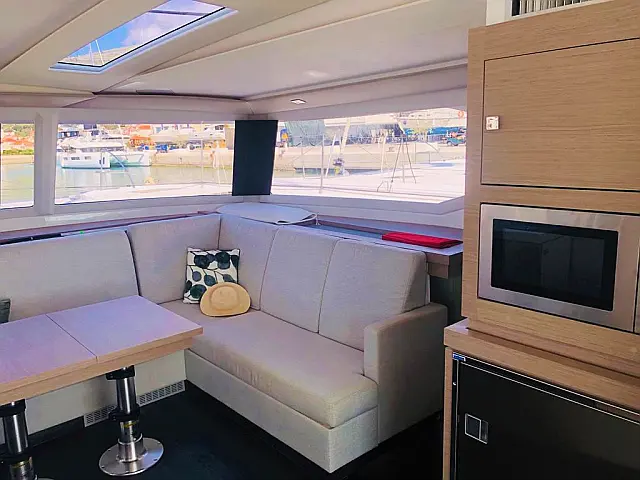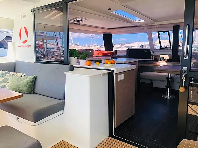 Dishwasher , Cockpit cushions , Generator , Heating , Water maker , Coffee maker , Dinghy , Electric winches , Inverter , Electric toilet , Bimini , Cockpit speakers , Teak Cockpit , Refrigerator , Barbecue grill in cockpit