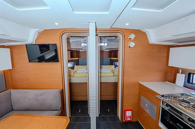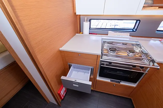 Refrigerator , Barbecue grill in cockpit , Bimini , Cockpit cushions , Sprayhood , Outboard engine , Dinghy , Wi-Fi & Internet