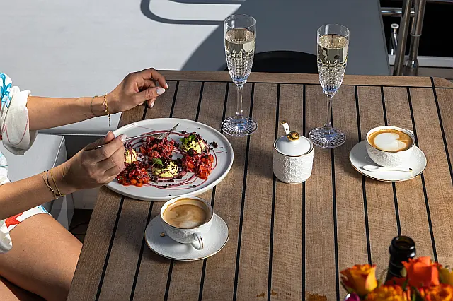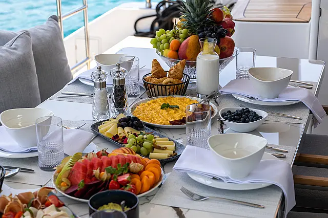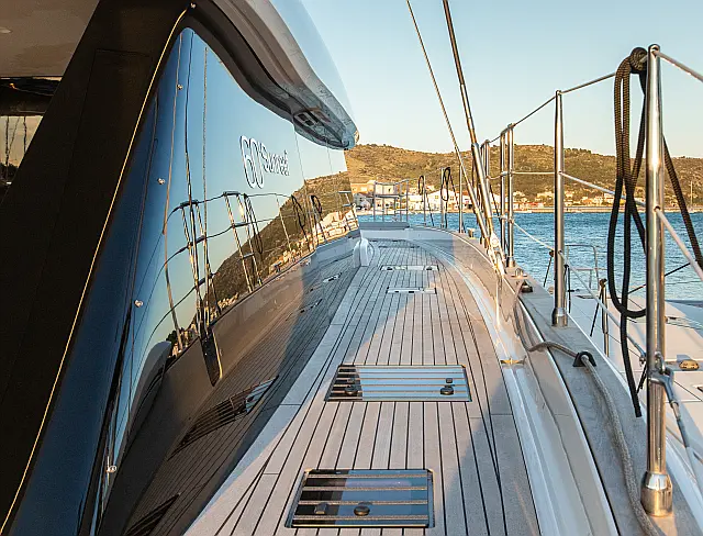 Teak deck , Cockpit cushions , Outboard engine , Refrigerator , Teak Cockpit , Dinghy , Heating , Generator , Water maker , Cockpit speakers , Wi-Fi & Internet , Electric toilet , Ice maker