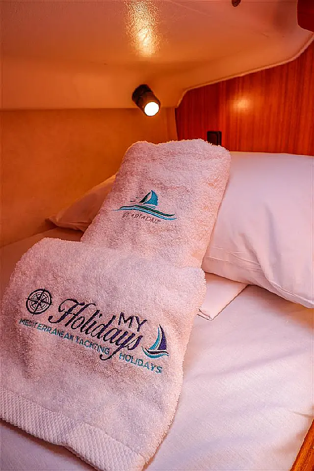 Charter package 3-5 cabin (includes welcome kit, end cleaning, bed linen & towels - one set/person/week, extra gas bottle, dinghy, outboard engine, 10GB WiFi, water and electricity at home-base) 250.00 € per booking