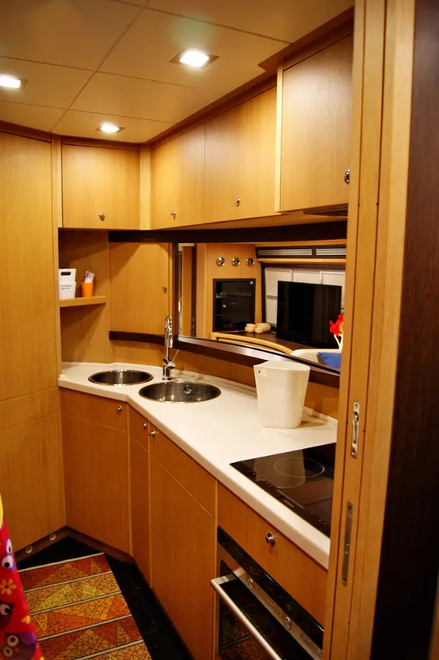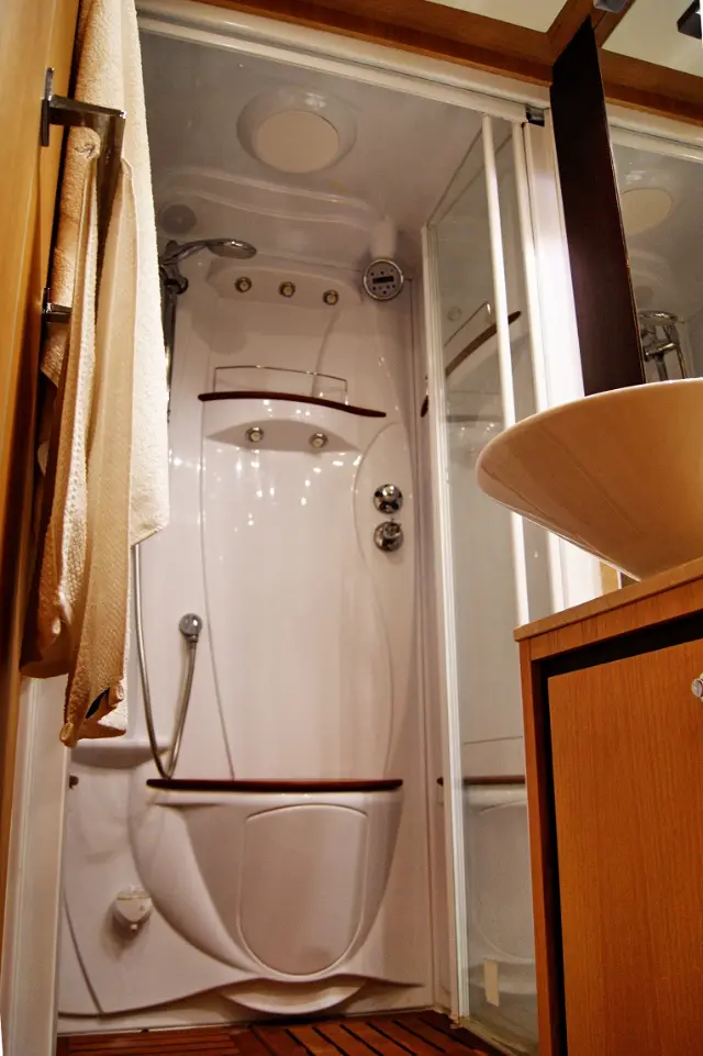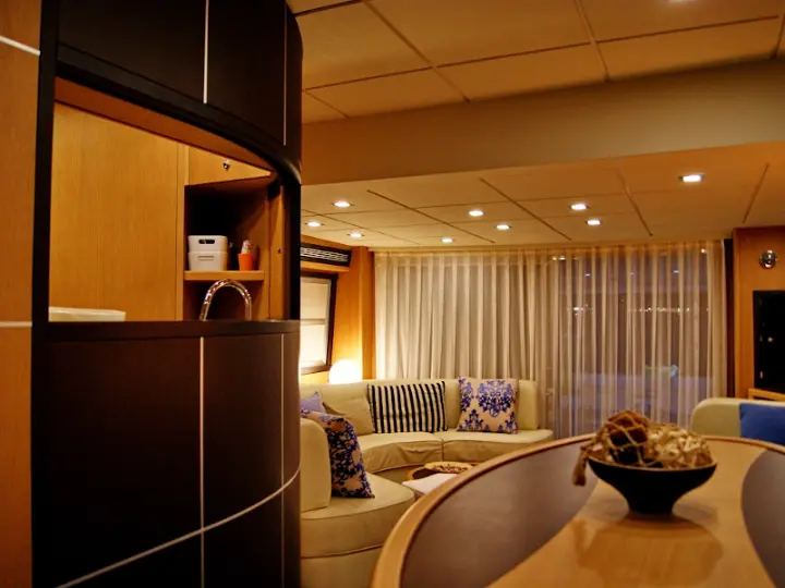 Bimini , Refrigerator , Generator , Hydraulic gangway , Dinghy , Outboard engine , Heating , Water maker , Ice maker , Electric winches , Coffee maker , Electric toilet , Teak deck , Wi-Fi & Internet , Barbecue grill in cockpit , Inverter , Teak Cockpit , Cockpit cushions , Air condition , Flybridge