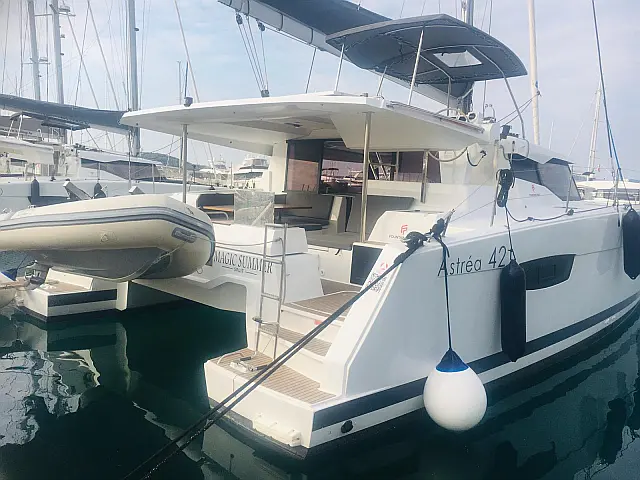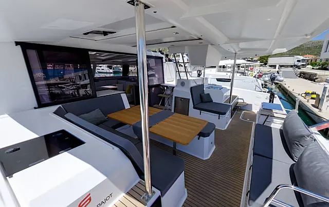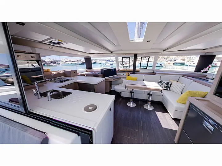 Holding tank , Air condition , Heating , Coffee maker , Dinghy , Inverter , Generator , Bimini , Cockpit speakers , Teak Cockpit , Cockpit cushions , Refrigerator , Barbecue grill in cockpit