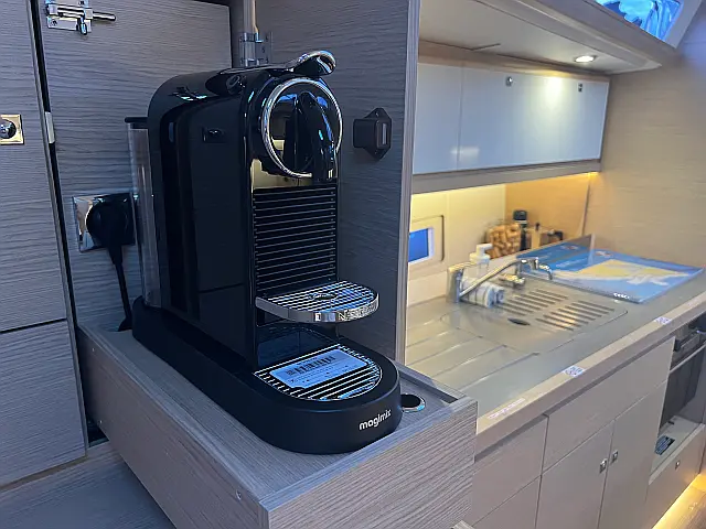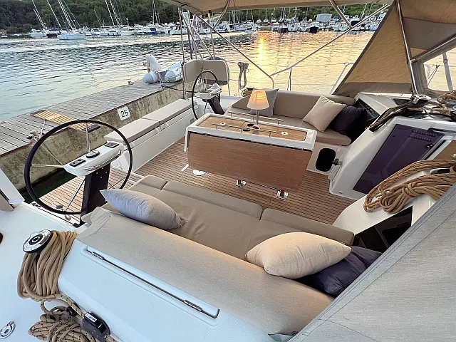 Cockpit speakers , Holding tank , Bimini , Cockpit cushions , Barbecue grill in cockpit , Dinghy , Sprayhood , Teak Cockpit , Coffee maker , Refrigerator , Heating , Solar Panels