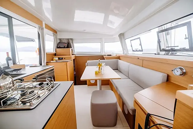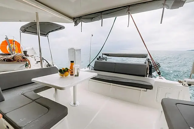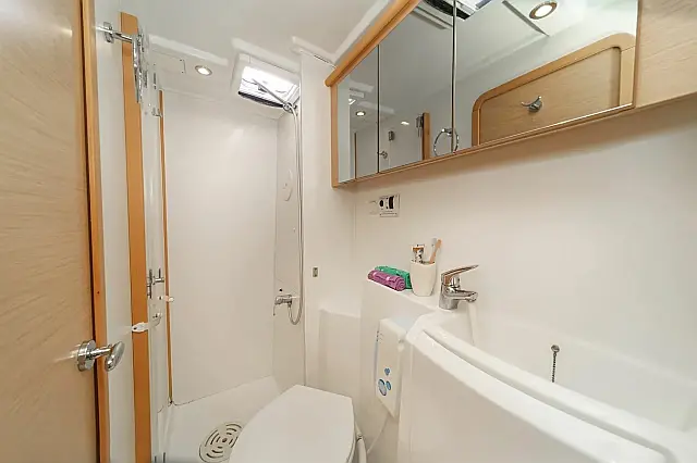 Bimini , Cockpit speakers , Coffee maker , Dinghy , Electric toilet , Ice maker , Outboard engine , Refrigerator , Solar Panels , Sprayhood , Teak deck , Wi-Fi & Internet