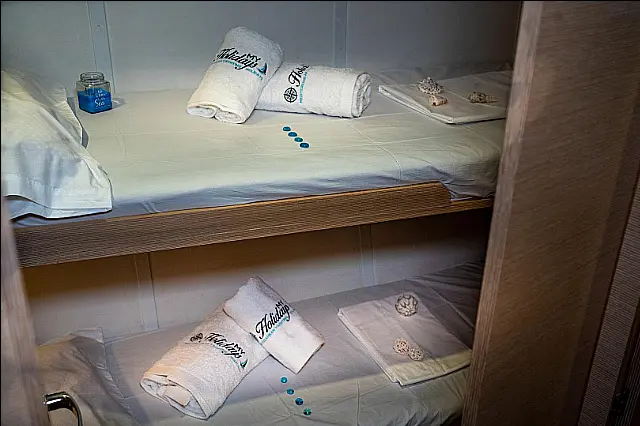 Charter package 3-5 cabin (includes welcome kit, end cleaning, bed linen & towels - one set/person/week, extra gas bottle, dinghy, outboard engine, 10GB WiFi, water and electricity at home-base) 250.00 € per booking
