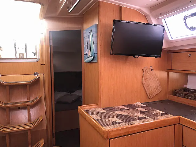 Sprayhood , Dinghy , Outboard engine , Inverter , Electric toilet , Holding tank , Cockpit speakers , Bimini , Refrigerator , Hydraulic gangway , Coffee maker , Solar Panels , Cockpit cushions