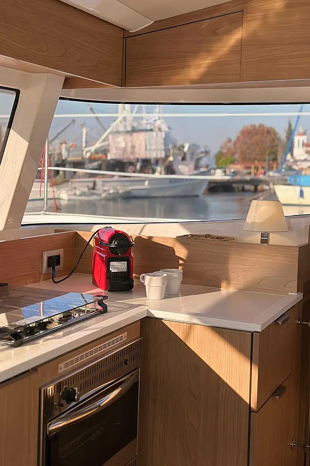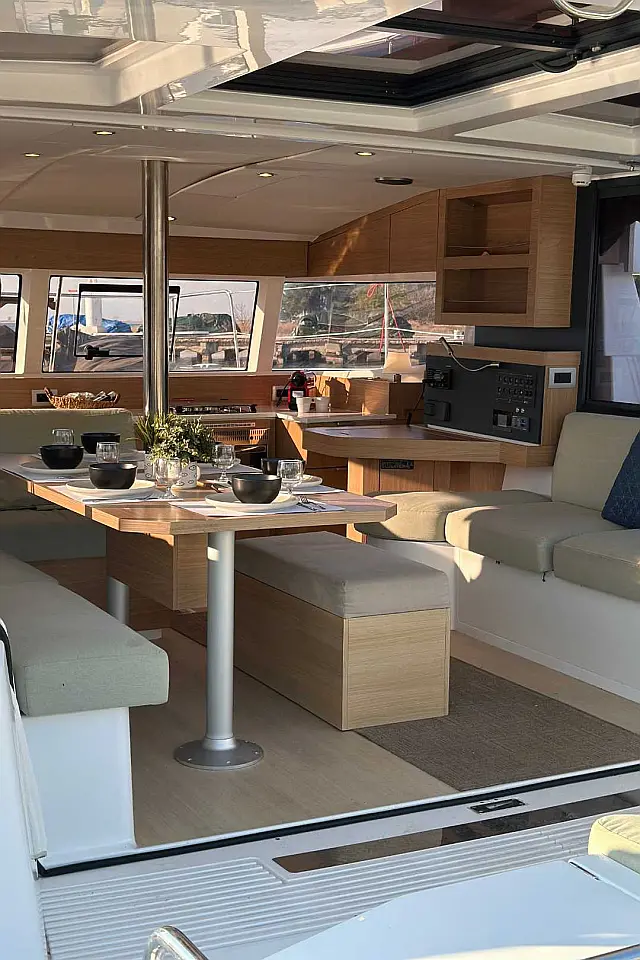 Refrigerator , Air condition , Cockpit speakers , Generator , Water maker , Solar Panels , Electric winches , Bimini , Cockpit cushions , Dinghy