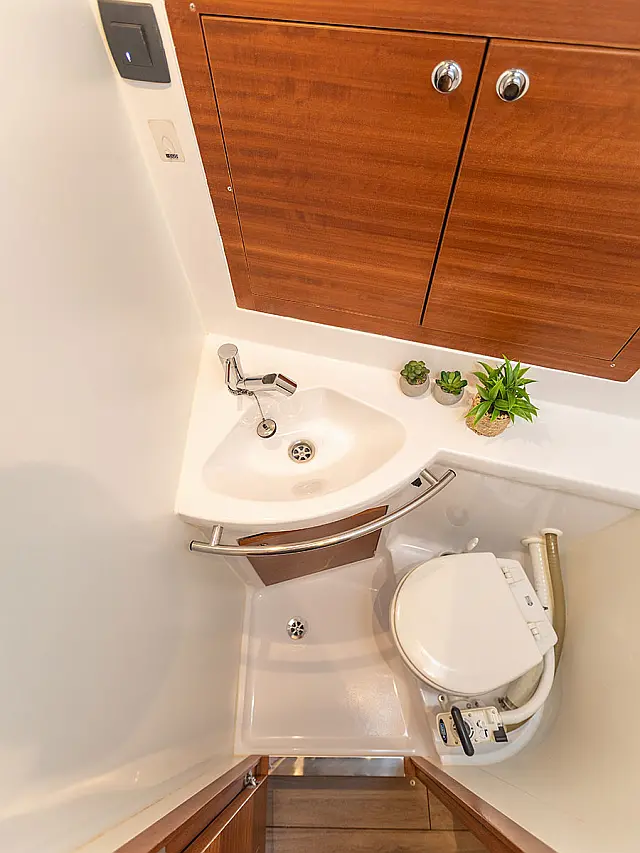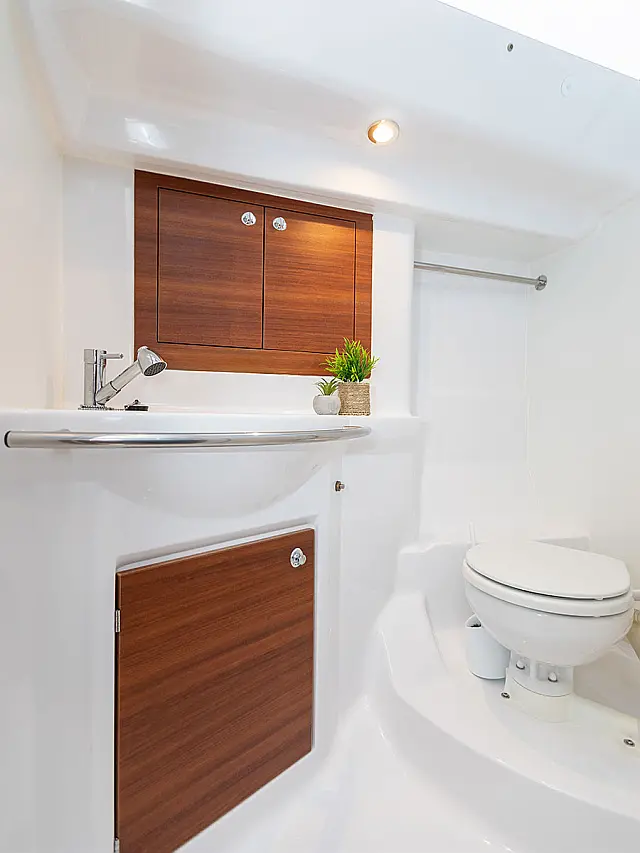 Teak Cockpit , Sprayhood , Bimini , Cockpit cushions , Outboard engine , Refrigerator , Cockpit speakers , Heating , Inverter