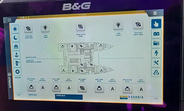 Swimming platform , Holding tank , Bimini , Cockpit speakers , Dinghy , Heating , Refrigerator , Sprayhood , Wi-Fi & Internet , Solar Panels , Electric winches , Coffee maker , Electric toilet