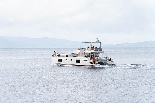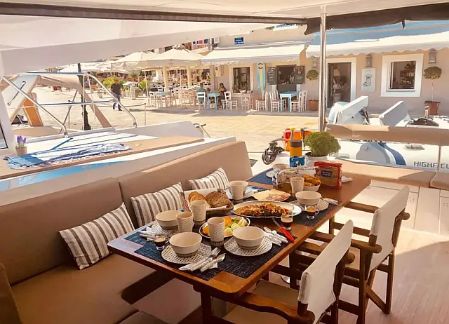 Charter package: [End Cleaning, Outboard Engine, Dinghy, 1x set of Bed Linen & Bath Towels/person, 1x bottle of local wine, sparkling water, 1 bottle of Gas local Greek nuts & marmalade, bathroom amenities, rubbish bags, welcome card.] 500.00 € per booking