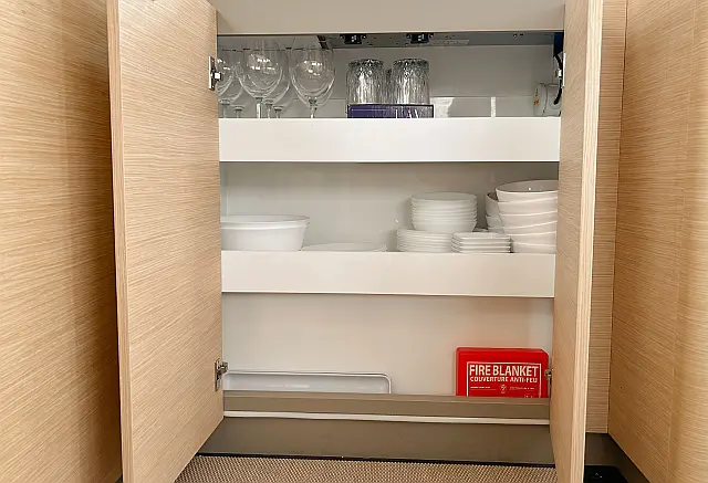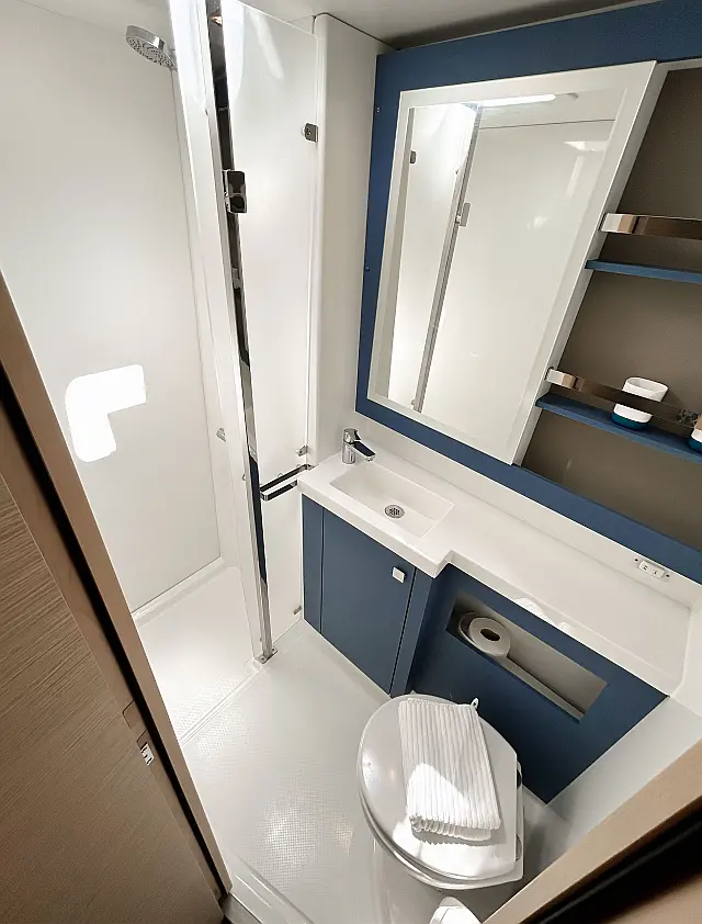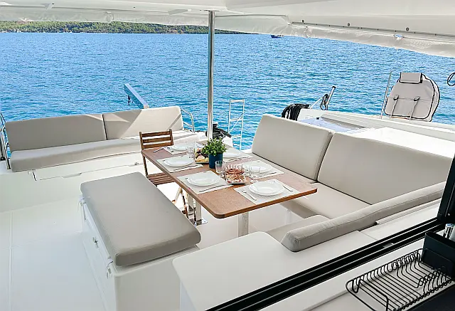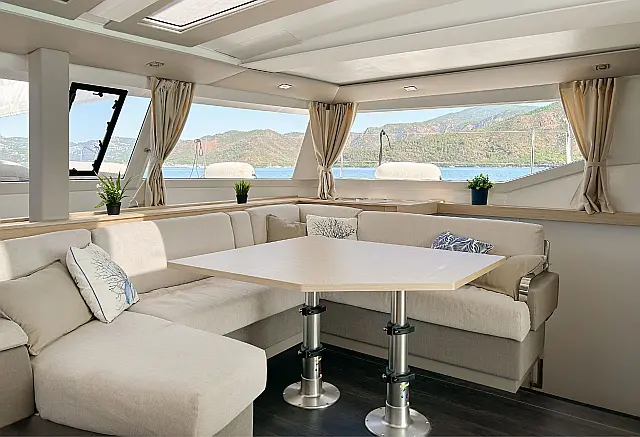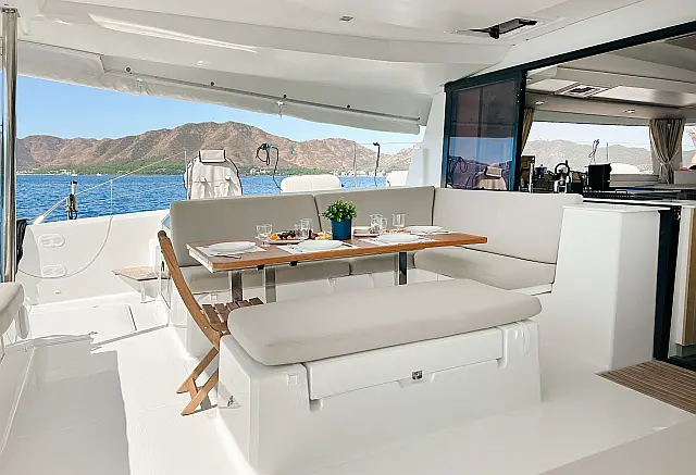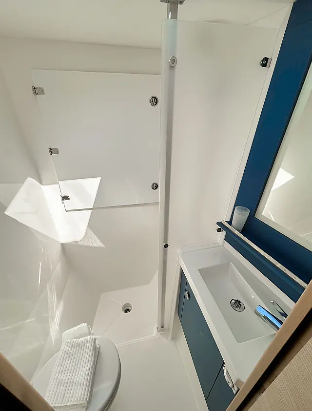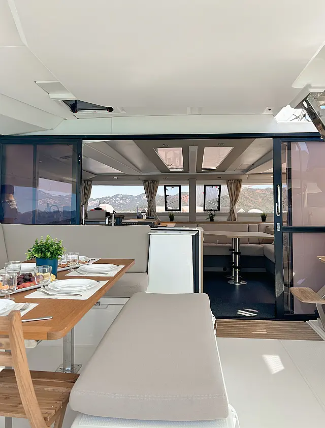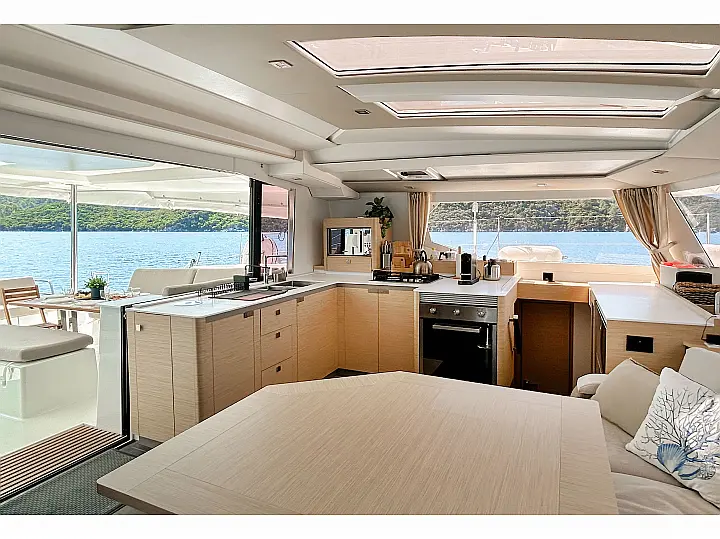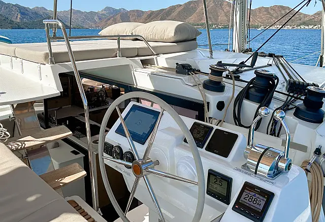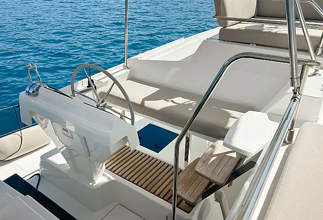 Generator , Dinghy , Coffee maker , Inverter , Air condition , Water maker , Electric winches , Refrigerator , Solar Panels , Cockpit cushions , Cockpit speakers , Wi-Fi & Internet , Electric toilet , Flybridge , Barbecue grill in cockpit , Bimini , Ice maker , Outboard engine , Sprayhood