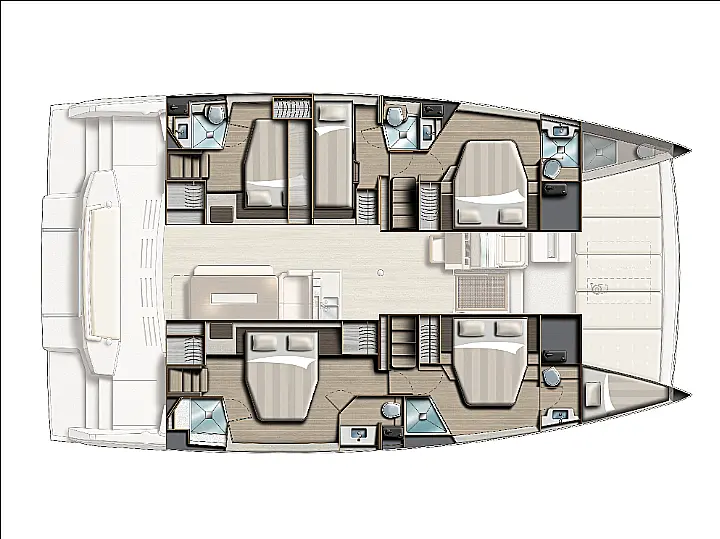 6 for clients + skipper cabin