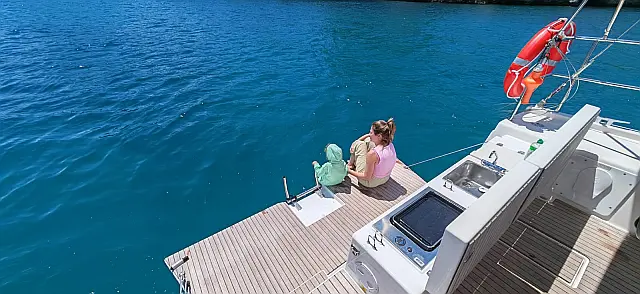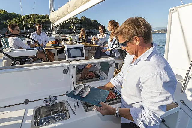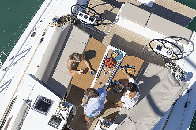 Outboard engine , Cockpit speakers , Solar Panels , Barbecue grill in cockpit , Water maker , Teak Cockpit , Swimming platform , Sprayhood , Bimini , Inverter , Air condition , Coffee maker , Cockpit cushions , Electric toilet , Dinghy , Refrigerator