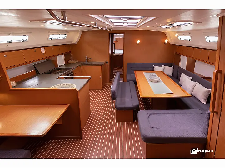 Swimming platform , Bimini , Cockpit cushions , Refrigerator , Electric toilet , Solar Panels , Sprayhood , Teak Cockpit , Dinghy , Heating , Inverter