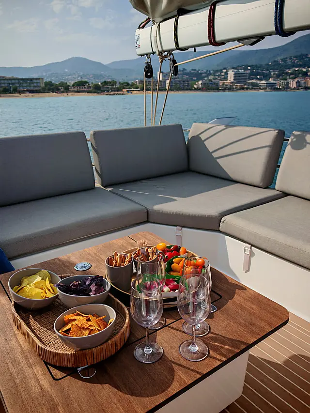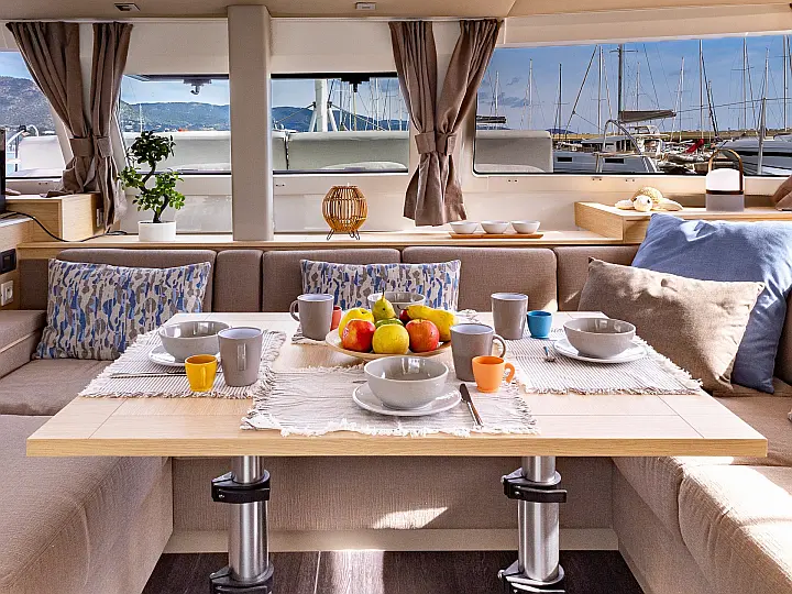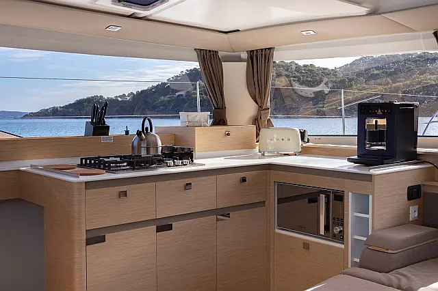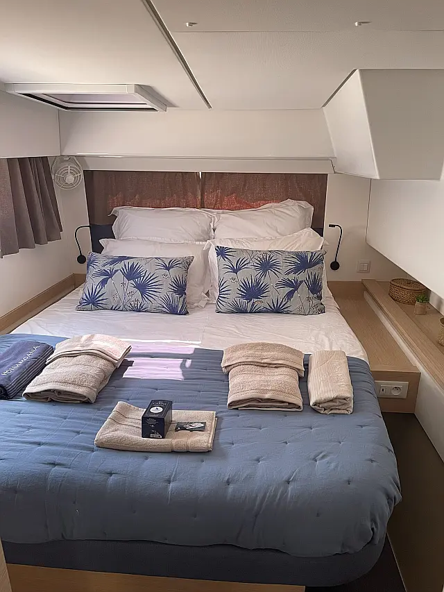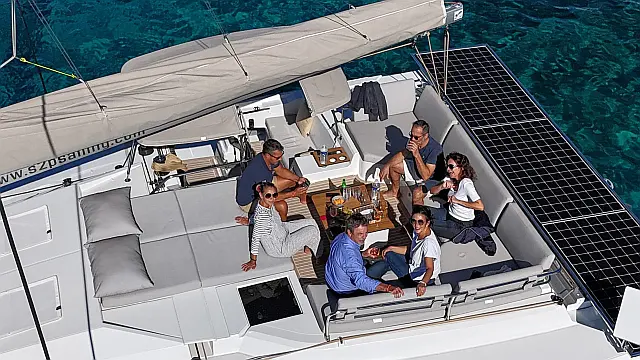 Swimming platform , Water maker , Air condition , Heating , Washer/Dryer , Electric toilet , Wi-Fi & Internet , Dinghy , Outboard engine , Electric winches , Refrigerator , Coffee maker , Generator , Solar Panels , Inverter
