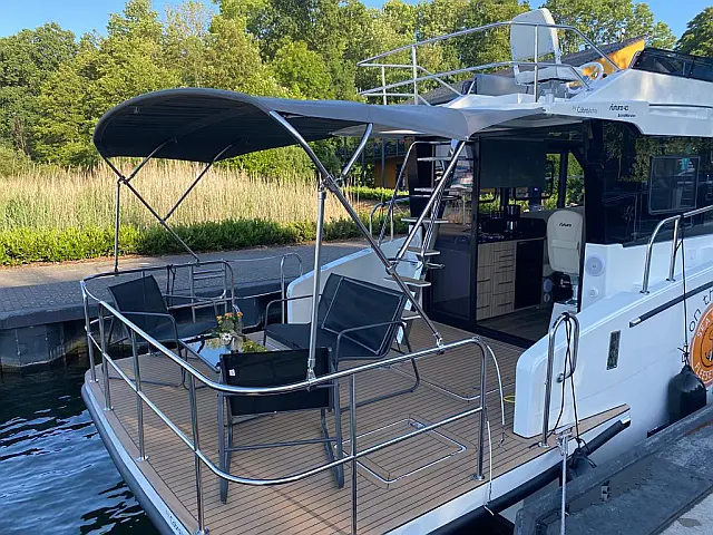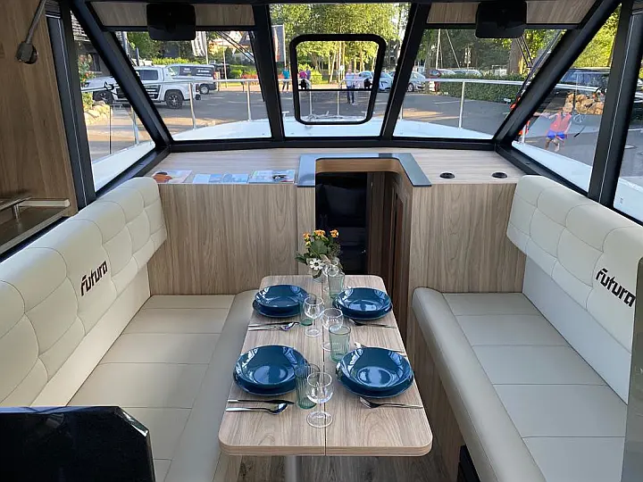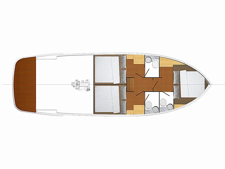 Refrigerator , Coffee maker , Cockpit speakers , Swimming platform , Bimini , Generator , Electric winches , Inverter , Electric toilet