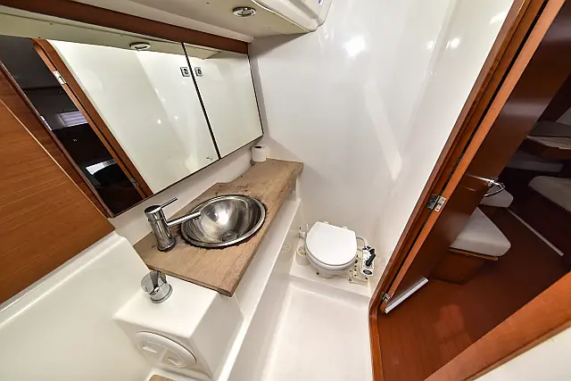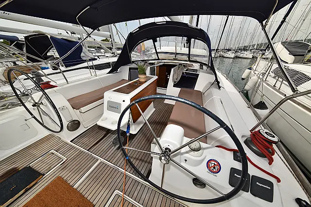 Cockpit speakers , Swimming platform , Bimini , Cockpit cushions , Refrigerator , Sprayhood , Wi-Fi & Internet , Teak Cockpit , Solar Panels , Holding tank