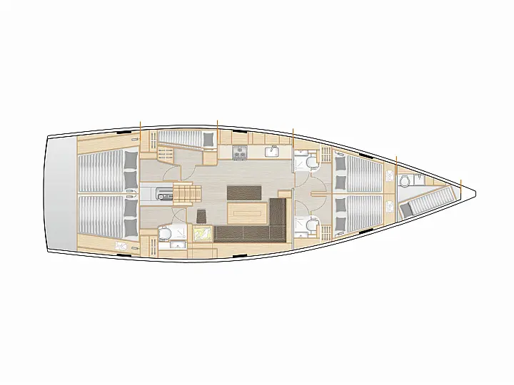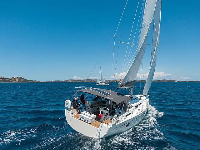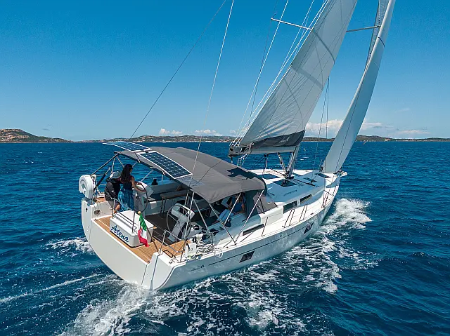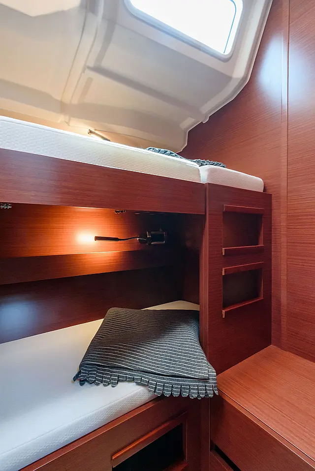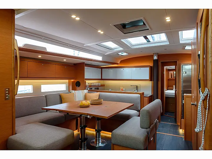 Swimming platform , Bimini , Cockpit cushions , Refrigerator , Electric toilet , Electric winches , Barbecue grill in cockpit , Solar Panels , Teak Cockpit , Dinghy , Inverter , Water maker