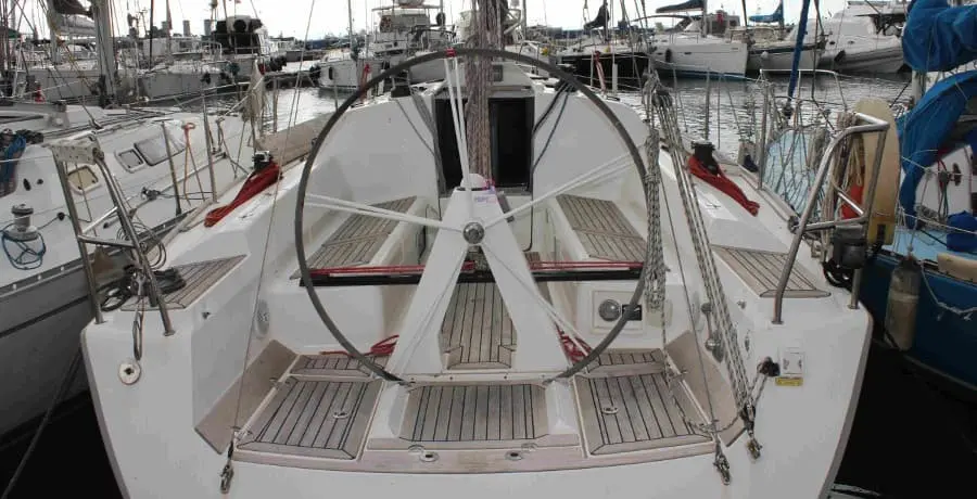 Equipment: autopilot, Full batten mainsail, GPS, VHF, dinghy, wind speed and direction counter, CD player..