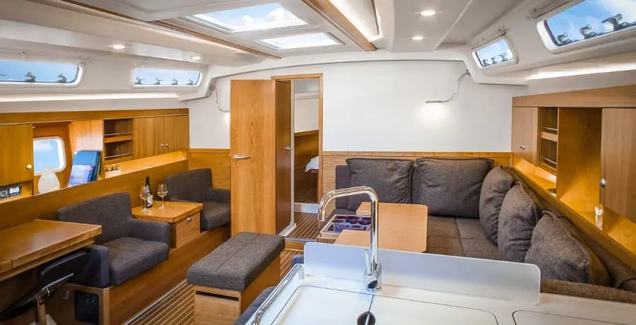 Beautiful 3 or 4-cabin cruiser model with full batten mainsail available for charter from Kaštela (Split) Croatia. Hanse 445 has many new enhancements that gives this sailing yacht’s performance, user-friendliness, luxury and safety at sea. The interior is larger, more light-filled, and more luxurious than ever. The deck is clear, with flush hatches and pop down cleats, it’s safe and easy to move around on deck.