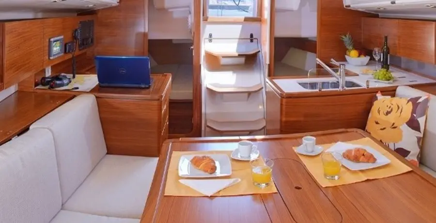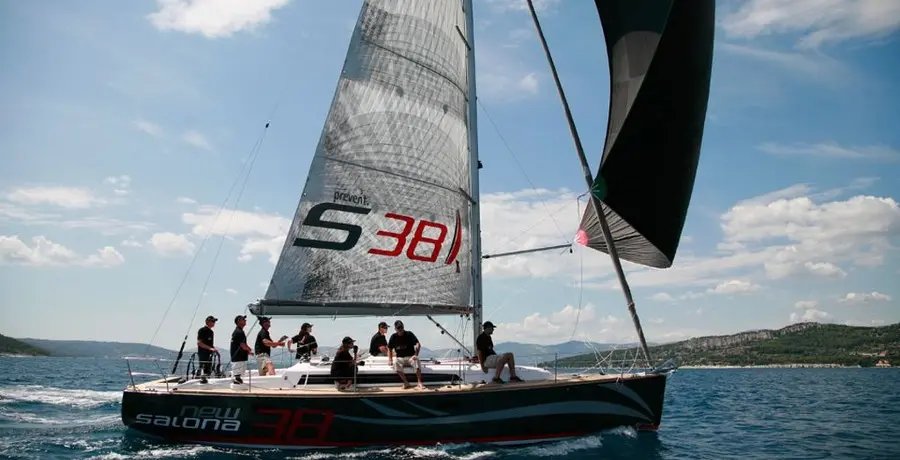 Superb 12 - meter racing boat designed and optimized for maximum performance combined with easy maneuvering. 3-cabin cruiser-racer model with 2 steering wheels and full batten mainsail, designed by J&J Design studio. Clean deck with elegant lines and voluminous cockpit gives the boat a special functional and aesthetic value. Salon 38 is characterized by a spacious interior typical of larger boats. 15 identical sailboats based in Primošten, Croatia.