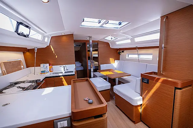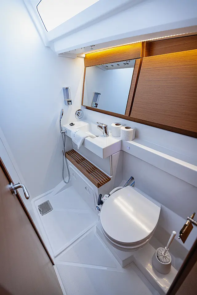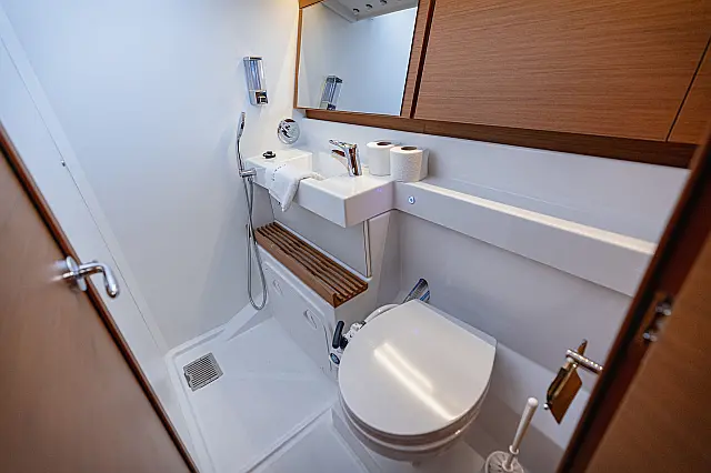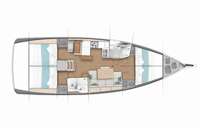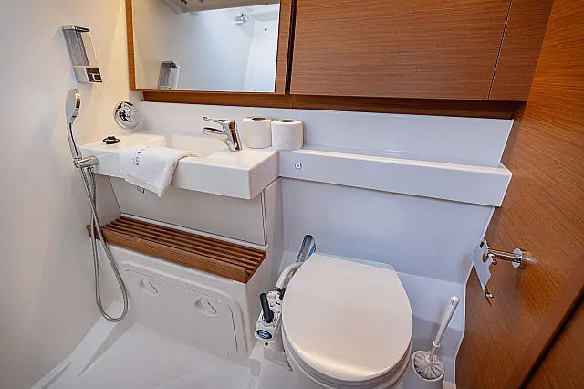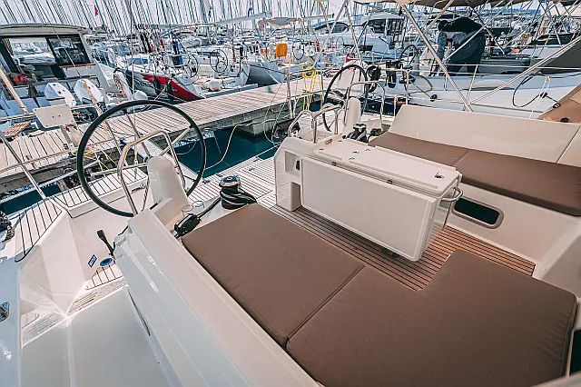 Electric winches , Cockpit speakers , Swimming platform , Teak deck , Outboard engine , Dinghy , Air condition , Sprayhood , Bimini