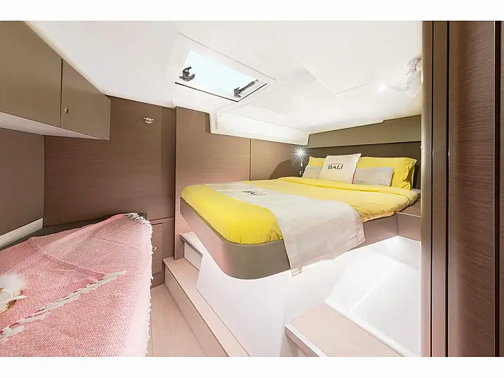 Air condition , Bimini , Electric winches , Generator , Outboard engine , Cockpit cushions , Solar Panels
