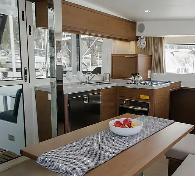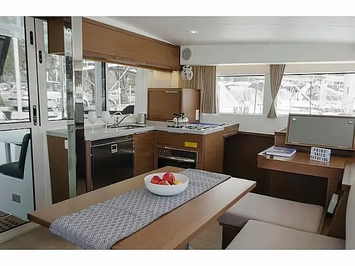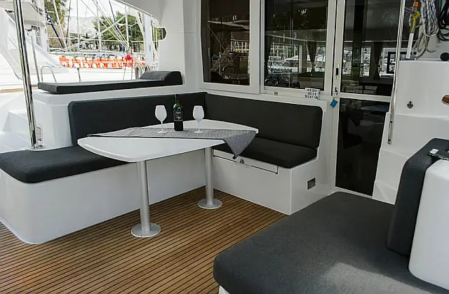 Dinghy , Outboard engine , Bimini , Cockpit cushions , Teak Cockpit , Solar Panels , Convertible table , Refrigerator , Electric toilet , Generator , Water maker