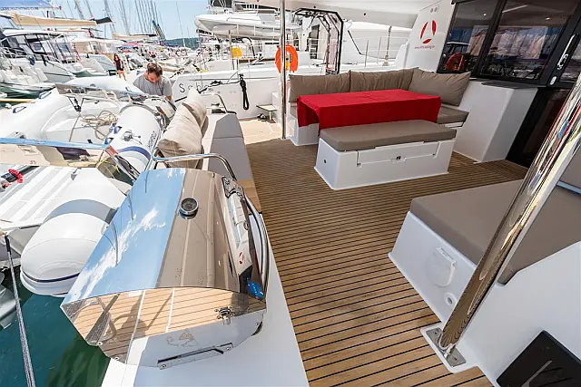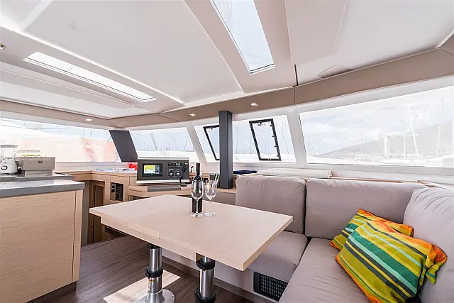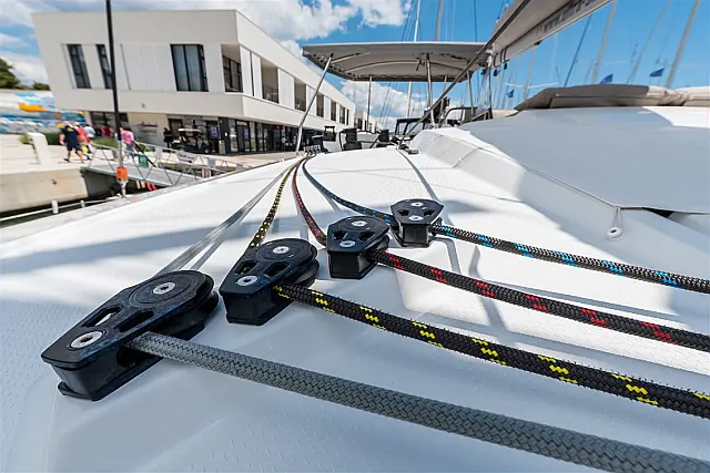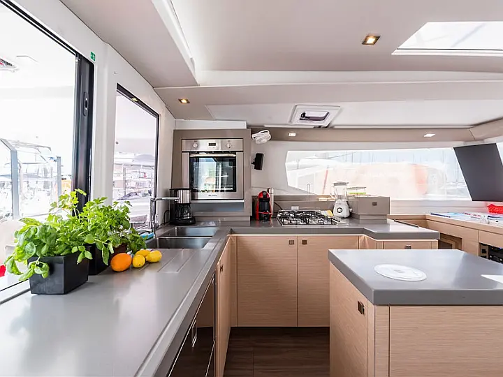 Dishwasher , Cockpit cushions , Generator , Heating , Water maker , Coffee maker , Dinghy , Electric winches , Inverter , Electric toilet , Bimini , Cockpit speakers , Refrigerator , Barbecue grill in cockpit