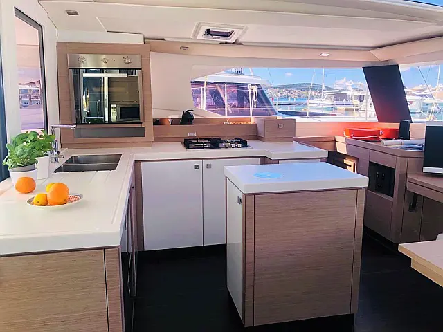 Dishwasher , Cockpit cushions , Generator , Heating , Water maker , Coffee maker , Dinghy , Electric winches , Inverter , Electric toilet , Bimini , Cockpit speakers , Teak Cockpit , Refrigerator , Barbecue grill in cockpit