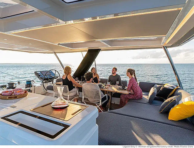 Refrigerator , Hydraulic gangway , Flybridge , Air condition , Cockpit speakers , Dinghy , Inverter , Water maker , Coffee maker , Generator , Electric toilet