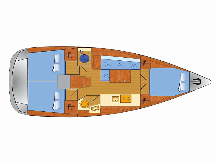 Heating , Wi-Fi & Internet , Electric toilet , Refrigerator , Bimini , Dinghy , Holding tank , Sprayhood , Swimming platform , Cockpit cushions , Cockpit speakers , Teak Cockpit