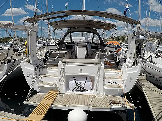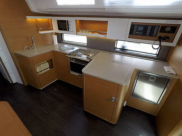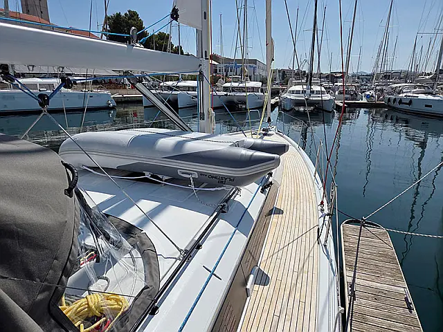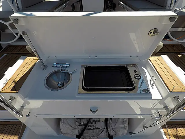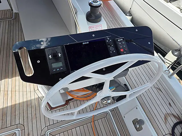Generator , Air condition , Barbecue grill in cockpit , Cockpit cushions , Sprayhood , Outboard engine , Teak deck , Dinghy , Electric winches , Wi-Fi & Internet