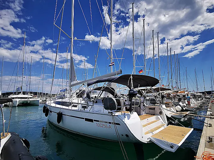Included in price (unlimited WiFi, outboard engine 2,5 HP and dinghy,berth in marina Baotic,standard equipment, Nespresso coffee machine, cockpit cushions, VAT 13%, linen and towels) 0.00 € per booking