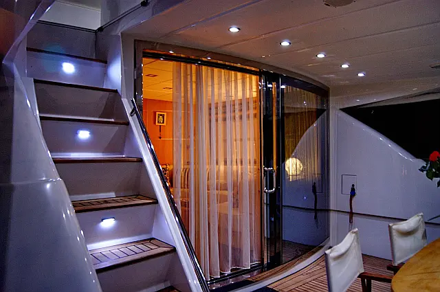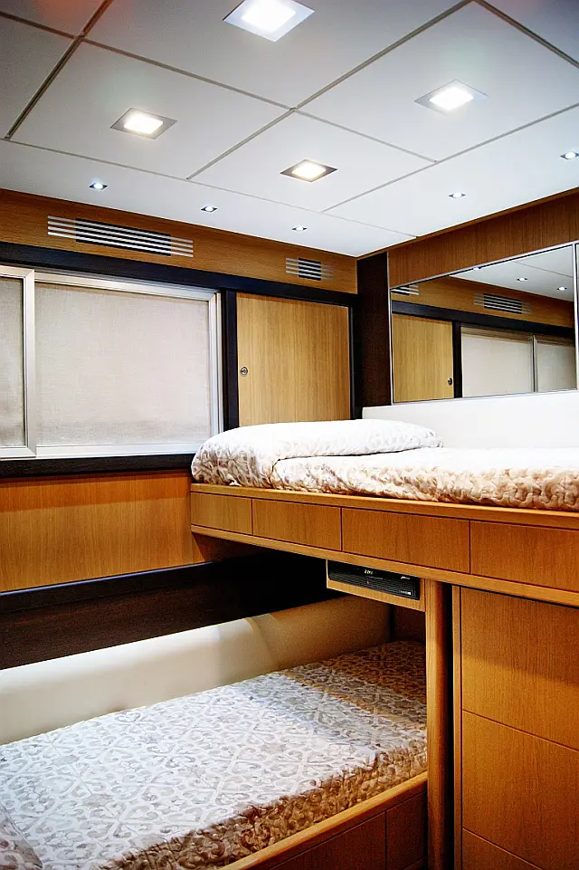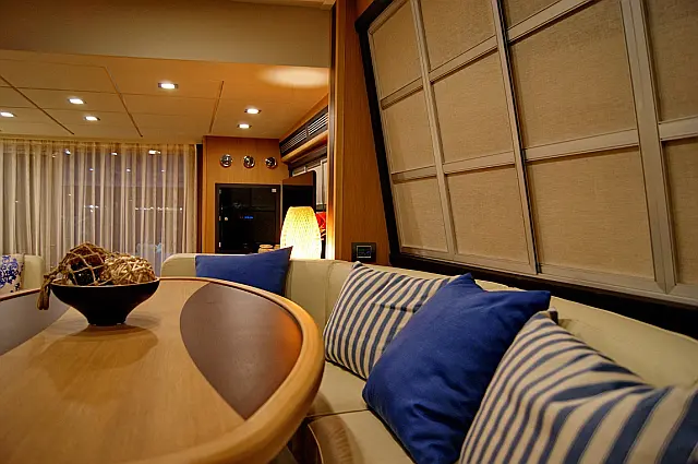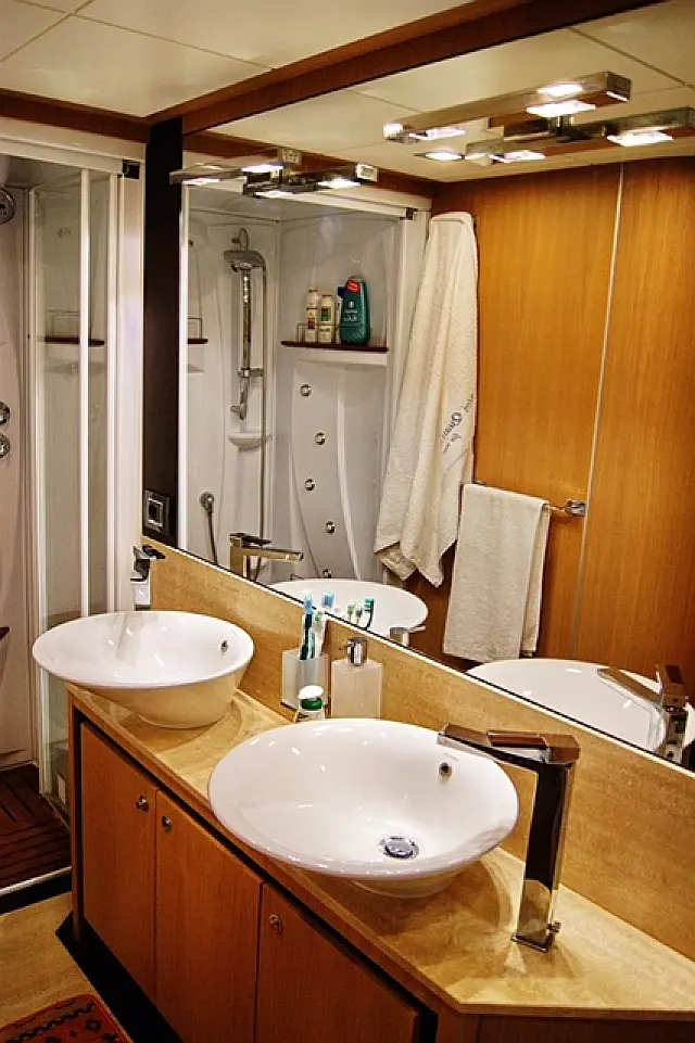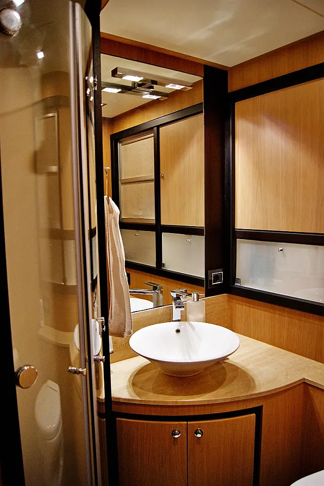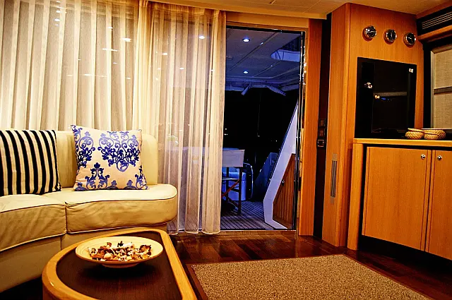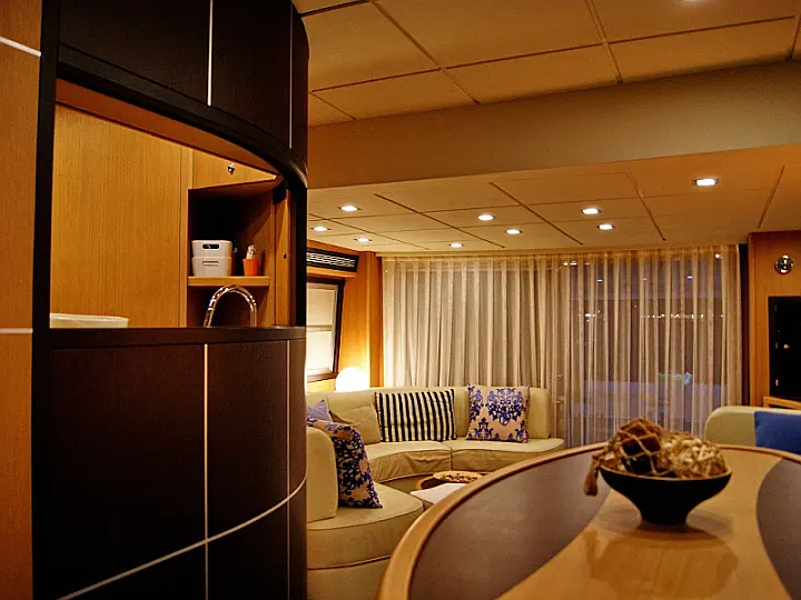 Bimini , Refrigerator , Generator , Hydraulic gangway , Dinghy , Outboard engine , Heating , Water maker , Ice maker , Electric winches , Coffee maker , Electric toilet , Teak deck , Wi-Fi & Internet , Barbecue grill in cockpit , Inverter , Teak Cockpit , Cockpit cushions , Air condition , Flybridge