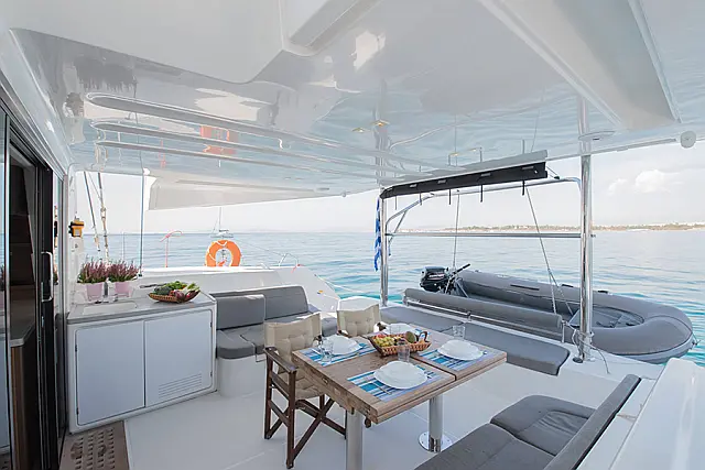 Air condition , Bimini , Electric toilet , Generator , Inverter , Solar Panels , Sprayhood , Water maker , Electric winches , Refrigerator , Cockpit cushions , Coffee maker , Outboard engine , Dinghy